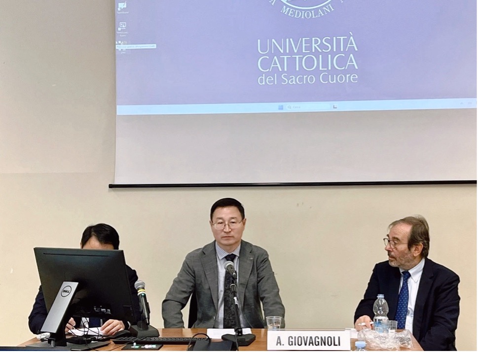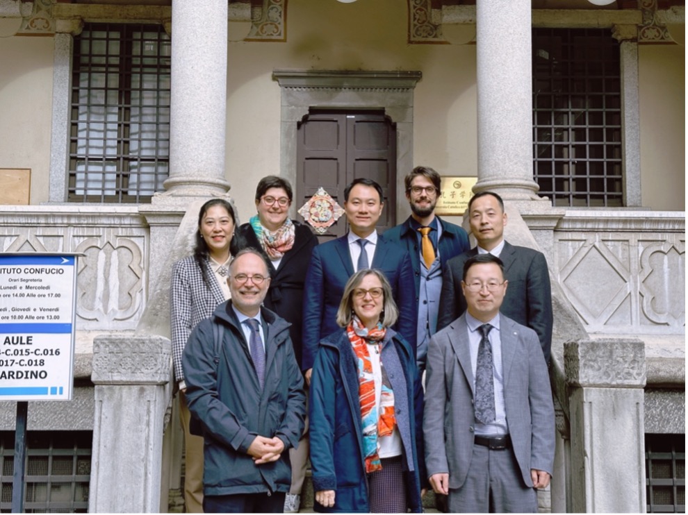 11月4日,代表团参加由米兰圣心大学世界历史研究中心与圣心孔子学院联合举办的“中欧文化交流史”工作坊。本次工作坊由意大利历史学会会长、圣心大学禁漫 主任、孔子学院科学委员会委员乔万里教授主持,圣心孔子学院意方院长竺易安、圣心大学外语系中文项目负责人兼孔子学院教学顾问夏慕华、孔子学院中方院长梁清及部分孔子学院教师、圣心大学米兰校区相关专业师生参加了此次活动。