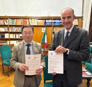 11月12日,代表团访问了罗马大学。该校常务副校长比亚吉尼、禁漫 主任萨乔罗共同接待了代表团一行。双方回顾了多年来在学生交换及人才培养等方面取得的成果,并就未来在联合科研及扩大学生学者互派规模等方面达成共识。会谈后,双方签署了院系级框架性合作协议。