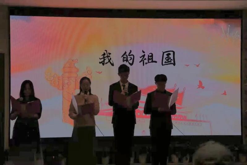 在压场节目《我的祖国》朗诵声中,联欢会圆满结束