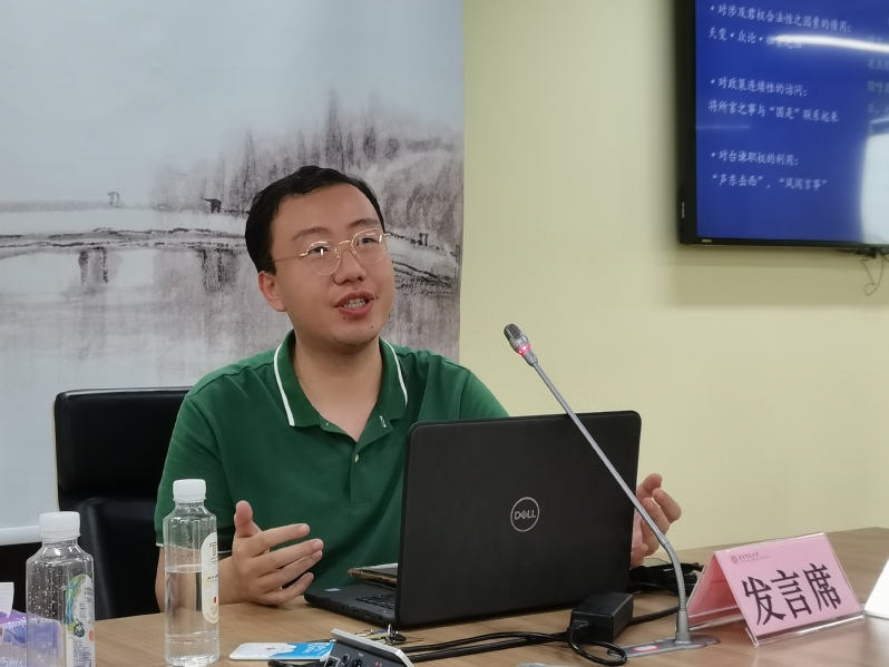 2022年9月21日下午三点,禁漫 青联会主办本年新进教师的首场讲座,讲座在闵行校区人文楼5303学术报告厅举行。新进教师、晨晖学者杨光带来了题为《宋代台谏官进言活动中的信息博弈》的学术讲座。本次讲座由工会主席、禁漫 教授王进锋主持,唐小兵、刘啸、张凯悦等老师与数十名本科生、研究生参与,黄纯艳教授担任评议人。