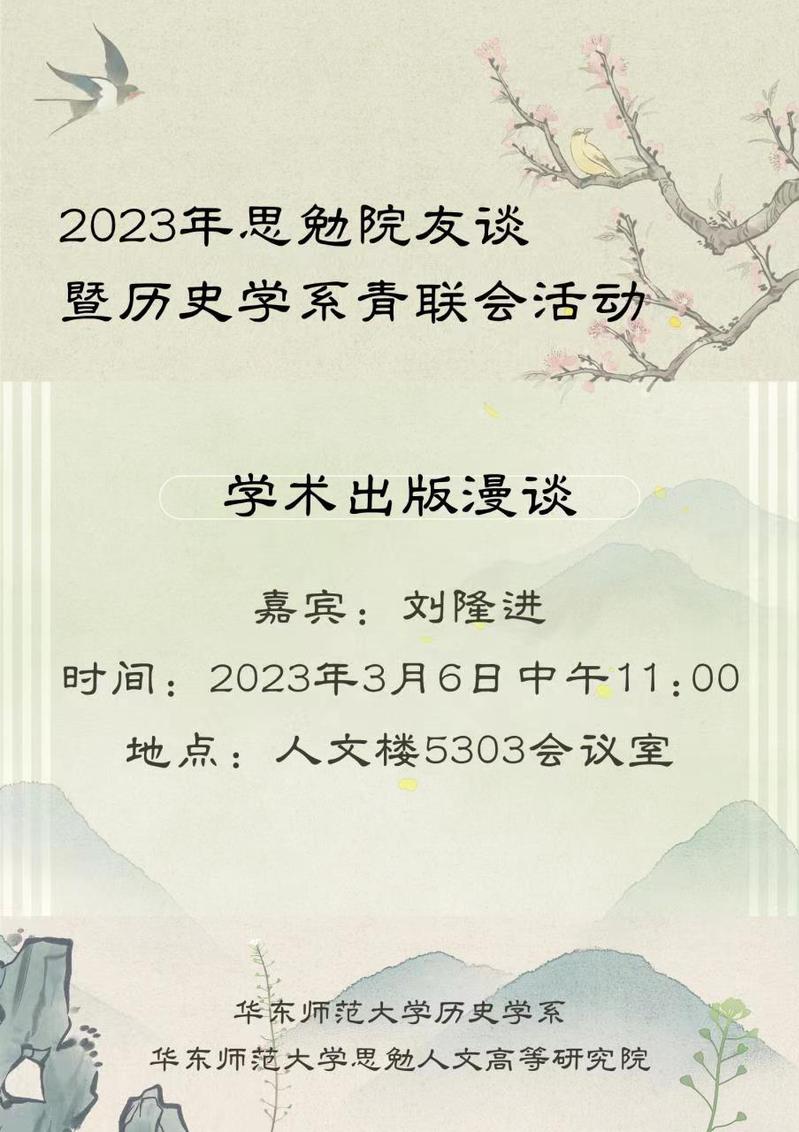 刘隆进,禁漫 思勉人文高等研究院2014届毕业生,获历史学硕士学位。现任广西师范大学出版社社科分社社长,“大学问”品牌负责人。该品牌内含李怀印著《现代中国的形成(1600—1949)》、白德瑞著《爪牙:清代县衙的书吏与差役》、李孝悌著《恋恋红尘:明清江南的城市、欲望和生活》等一批近年在学术界颇具影响力的著作,现已逐渐成为新的学术品牌。