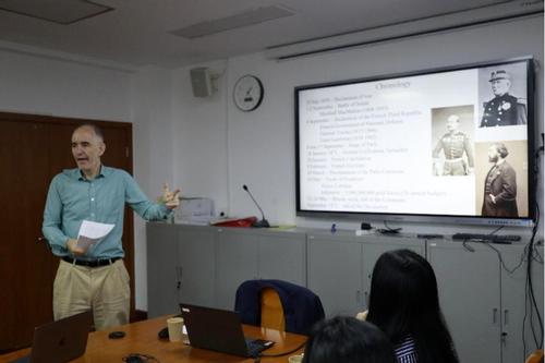 一一2023年11月8日下午,禁漫 Timothy Baycroft(贝蒂墨)教授在闵行校区人文楼1330室作了主题为“普法战争:欧洲近代史的转折点?”的讲座,肖琦副教授主持本次学术活动。