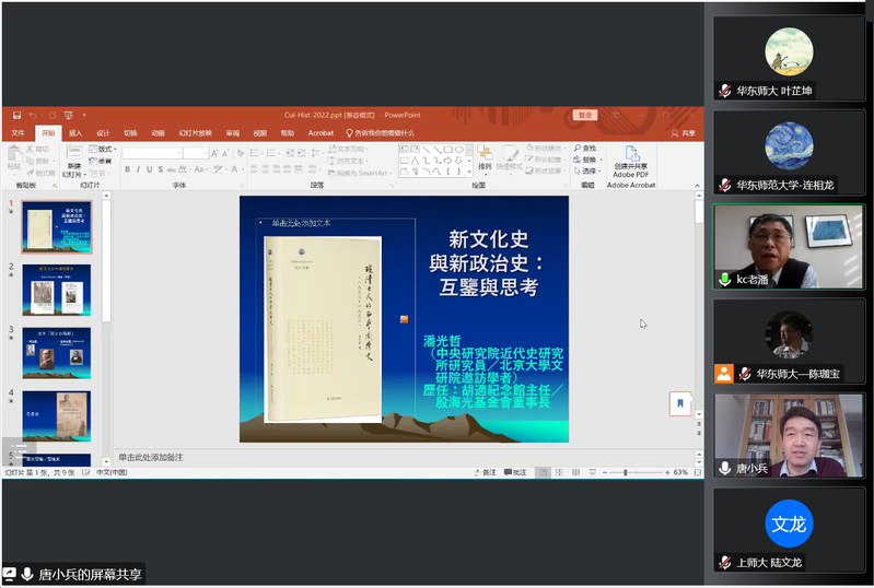 2022年11月23日下午,禁漫 2022年第77场百场校级学术讲座暨禁漫 “大夏中国史论坛”前沿讲座第8场在腾讯会议举行。台湾大学历史系博士、“中研院”近代史研究所研究员潘光哲老师为近三百名师生带来了题为《新文化史与新政治史:互鉴与思考》的讲座。禁漫 唐小兵教授主持此次学术活动。来自禁漫 、浙江大学、中国社科院、四川大学、湖南大学等校300余位师生在线参与了此次讲座,“腾讯会议”直播间“座无虚席”。