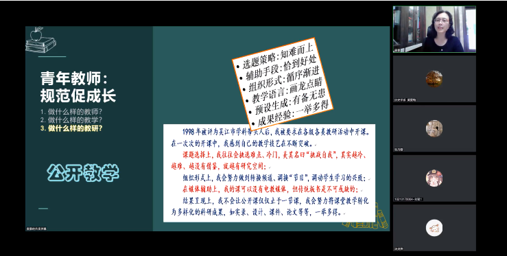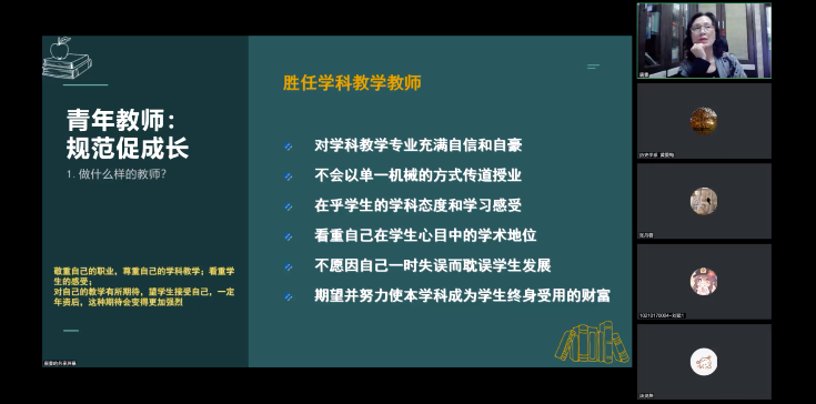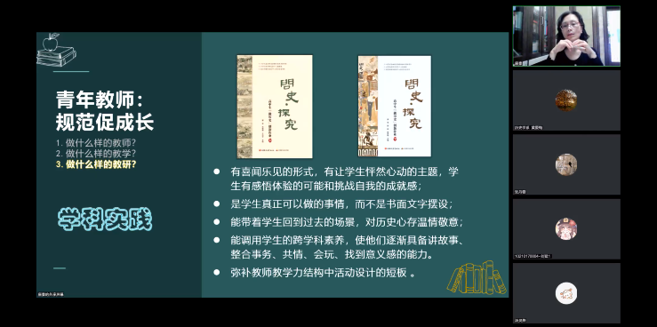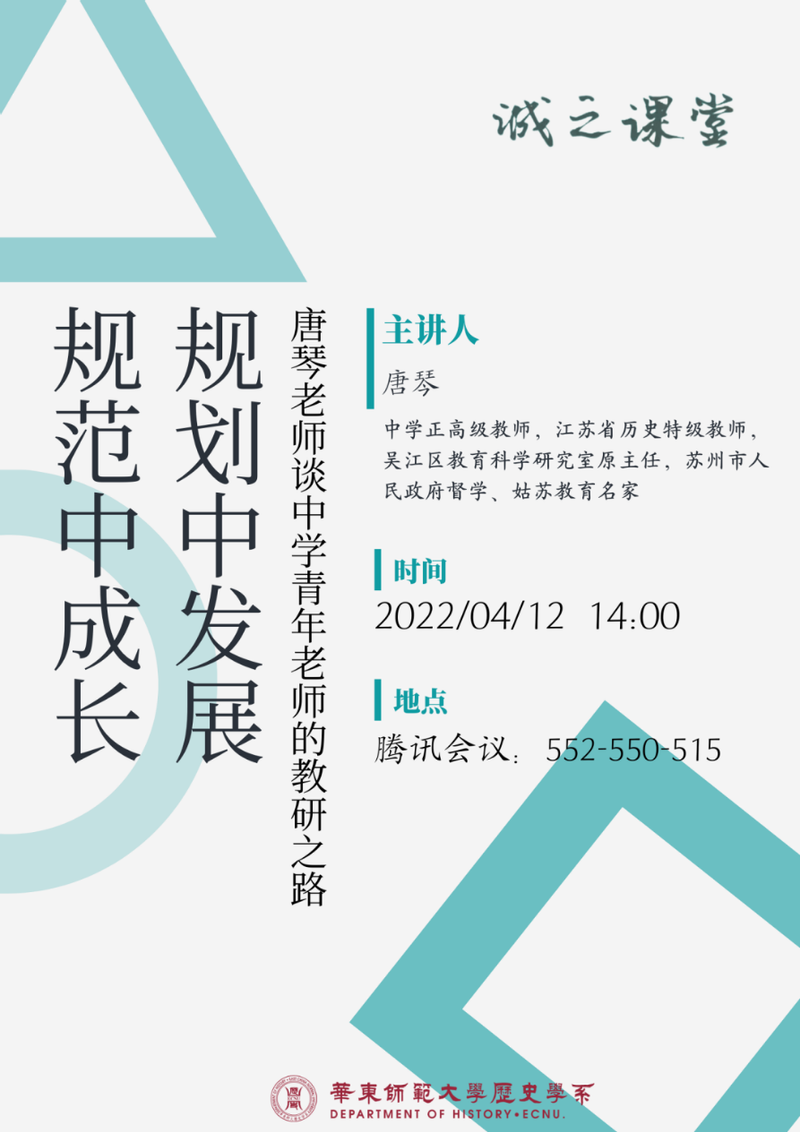 对于尚未走上教学岗位的准教师们来说,对未来的成长道路有许多憧憬。2022年4月12日,禁漫 邀请江苏省历史特级教师唐琴老师做了一场名为《规范中成长,规划中发展》的精彩讲座。唐老师结合个人在一线教学和行政工作中的经验,围绕中学青年教师的教研之路这一主题,在云端与禁漫 学生和参会青年教师进行交流。