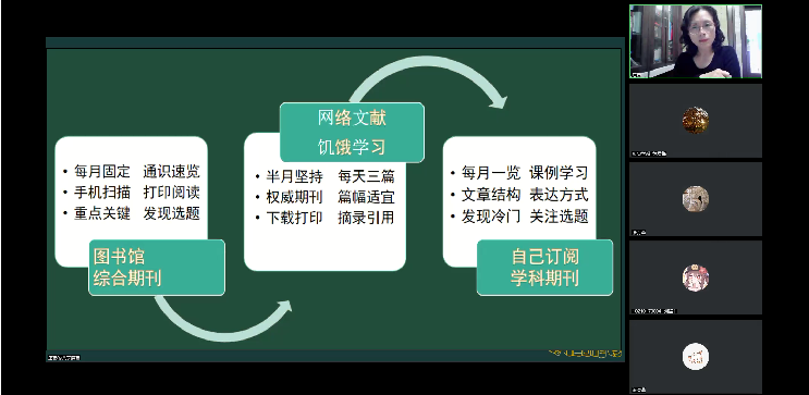 等到成长为骨干教师,唐老师提出要“规划助发展”:读书,丰厚自我→认识,发现自我→规划,定位自我→写作,突破自我。通过前辈的经验和论著,了解职业生涯发展规律和职业倦怠的负面影响;充分了解自己优势和弱项、主动了解相关文件和晋升条件。在此基础上制定三年成长规划,确定清晰可达的目标,争取三年跳一跳、十年大发展。青年教师偏重行动研究、荣誉获奖、观摩示范等方面的积累。教育科研体现了专业成长的“区分度”,写作发表是教育科研的关键要素。唐老师建议青年教师每月固定到图书馆广泛阅读综合期刊,从中发现感兴趣的选题;决定写作后,搜集网络文献,饥饿学习;自己订阅学科期刊,注意投稿期刊的写作方式。唐老师也提醒青年教师侧重写作教学论文,而非教材分析、解题、随笔等文章,投稿时也要注意期刊真伪。