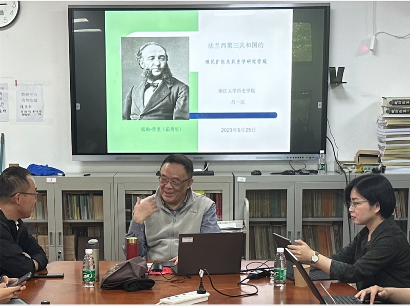 2023年5月25日下午3点,禁漫 2023年知名学者学术讲座第22场暨禁漫 “大夏世界史论坛”高端讲座第25场在人文楼1130室举行。浙江大学历史学院教授、法国海外科学院通讯院士吕一民老师带来了题为“法兰西第三共和国的殖民扩张及其史学研究管窥”的讲座。禁漫 朱明老师主持此次学术活动,肖琦、高嘉懿、范丁梁、钱盛华等老师,以及来自华东师大各院系和上海交通大学等高校的师生参与,讲座气氛热烈融洽。
